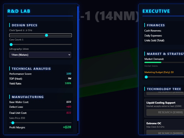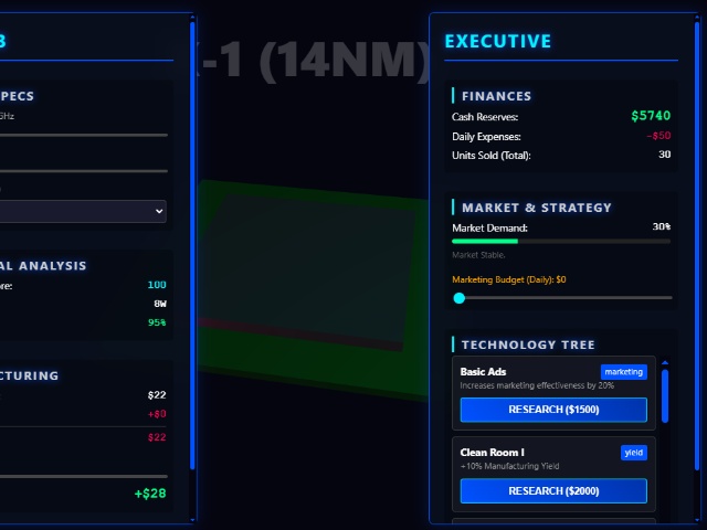 Get into the simulator of creating processors and selling them! Build a multi-million dollar chip manufacturing company. How much money can you make?