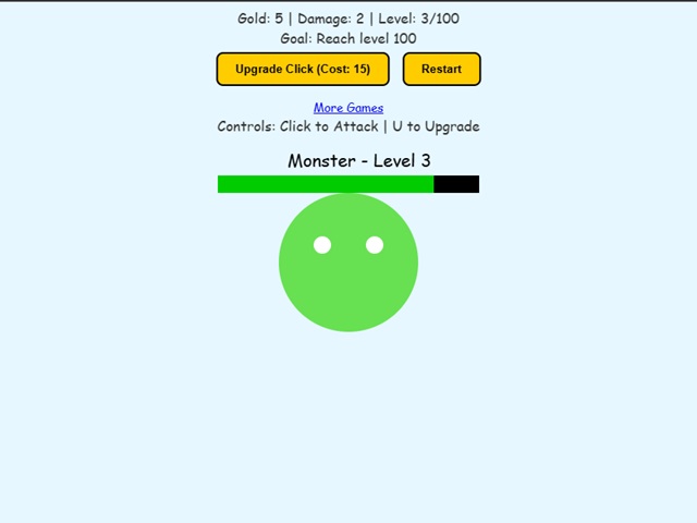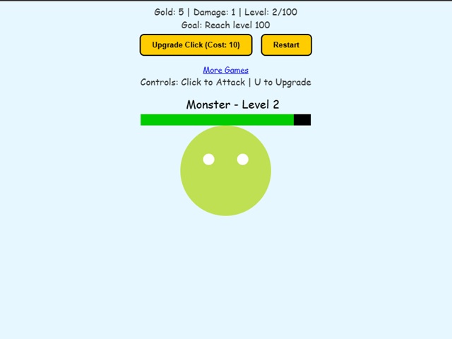 Gold can be spent on improving the attack, increasing damage to click. Improvements become more expensive every time, so it is important to strategically distribute resources. Control simple: click on the monster to attack or use the "Upgrade" button (or the "U" key) for improvements