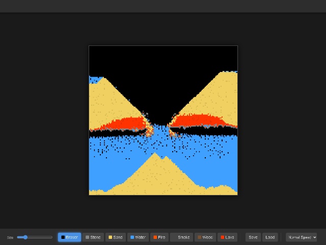 It's an interactive sandbox simulator written in HTML5 where you can experiment with the physical interaction of different elements in real time.