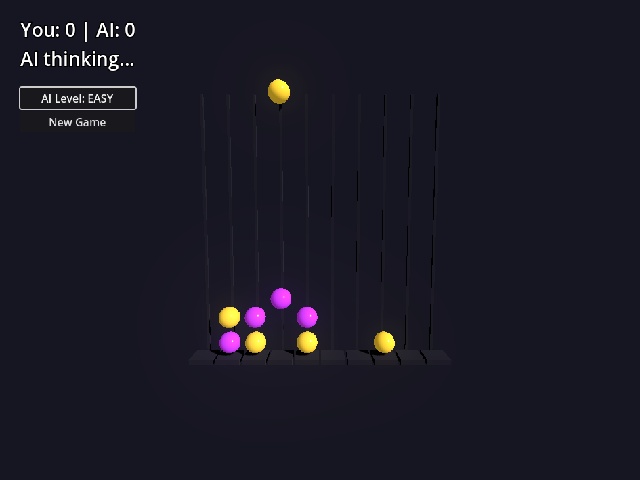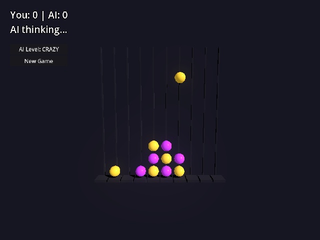 Godot Gravity Stack — a vertical take on "five in a row" on a 10×10 grid with gravity mechanics. Drop pegs into columns to form lines of 5 in any direction, including diagonals. The vertical stacking and limited column selection add a fresh strategic layer to the classic formula