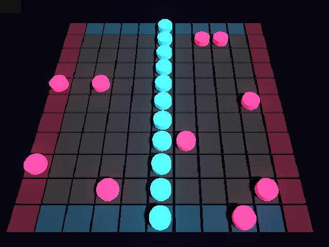 Godot Pathfinder — a 3D strategy game on a 10×10 board where the goal is to build the first continuous bridge across the field. You connect north to south, while the AI links east to west using pathfinding algorithms.