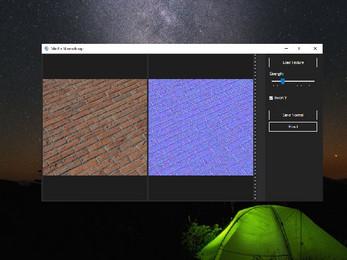 Merlin Normalmap is a simple and user-friendly tool for generating normal maps from regular textures. It allows real-time adjustment of effect strength with instant visual feedback. It is ideal for game developers and 3D artists who need a fast and clear workflow