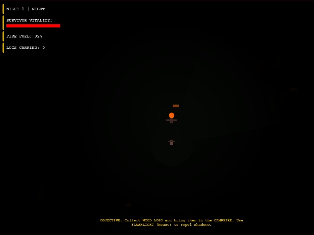 This is an atmospheric 2D survival horror game where you need to collect wood and keep the fire burning, using a flashlight to protect yourself from the advancing shadows in the forest.