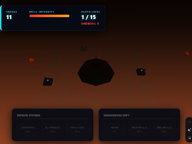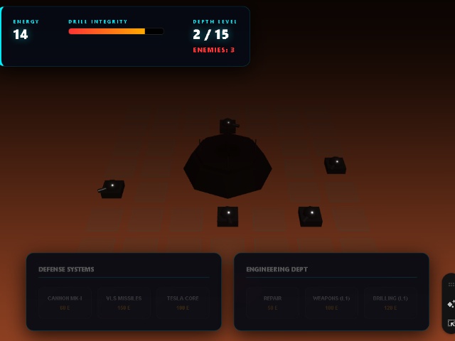 Protect the RIO corporation's drilling rig on hostile planets, wisely distributing the extracted energy between the construction of unique turrets and system upgrades to withstand 15 waves of alien attacks.