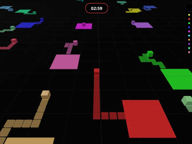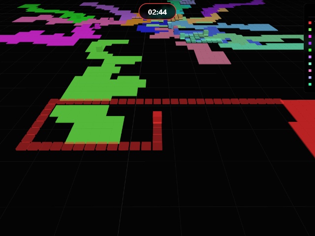 A 3D arcade game in the style of Paper.io, where players control cubes on a square field. The goal is to capture territory by tracing the contours of your trail and returning to a safe zone. The game features 20 AI bots, real-time dynamic player rankings, and a 3D camera that follows the player. Colliding with your own tail or the enemy's trail results in a loss. Control is carried out with the A/D keys or arrow keys.